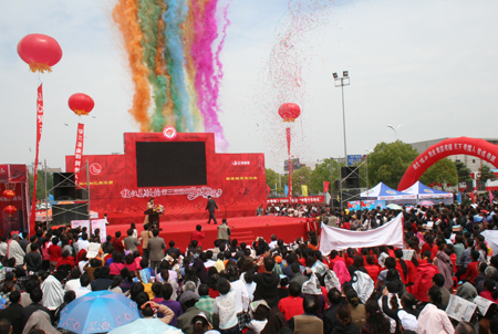 4月23日,ok138cn太阳集团集团玖源包装有限公司总经理刘凤春在公司门口为获得2009年度生产标兵的10名优秀员工举行欢送仪式,奖励他们赴三峡旅游。 …