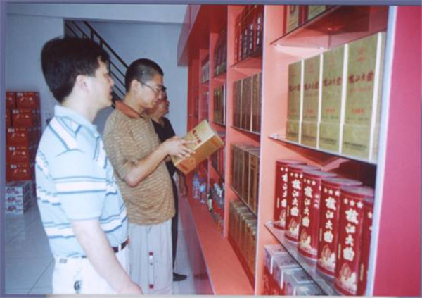 截止8月20日,枝江大曲“宜昌特供”在宜昌的销售已突破15000件。图为ok138cn太阳集团销售公司市场经理戚道寅在宜昌市场查看产品陈列情况。(张同 图…