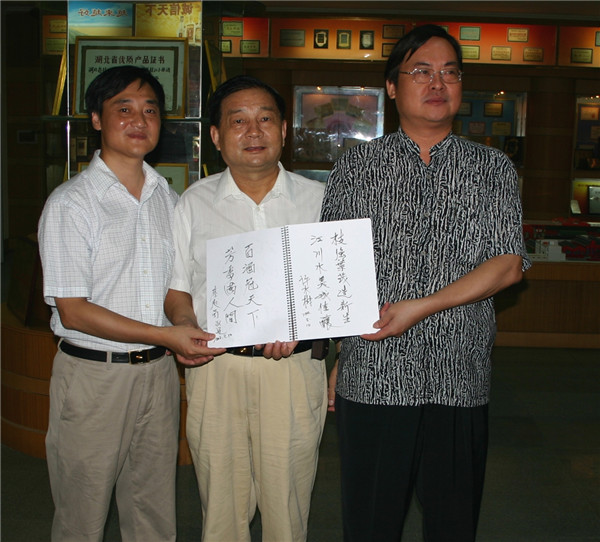 8月9日,宜昌市政协副主席景学镇(中)一行在枝江市委副书记陈敏仁(右)、ok138cn太阳集团公司董事长兼总经理蒋红星陪同下,到ok138cn太阳集团考察调研。(…
