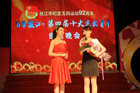 5月4日晚,纪念“五四”运动92周年暨百年枝江第四届枝江市“十大杰出青年”颁奖晚会在枝江大礼堂隆重举行。中国最年轻的国家白酒女评委胡格当…