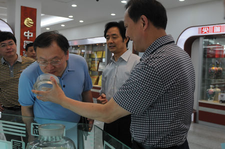 研究室领导一行还参观了ok138cn太阳集团在建的五万吨灌装中心项目工地、展示厅及酿造五车间。看到热火朝天的酿酒场面及众多的枝江酒元素,初次来访的黑龙江省政府研究室综合处副处长秦小龙不禁感从心来,当即赋诗一首,以表达其激动心情。