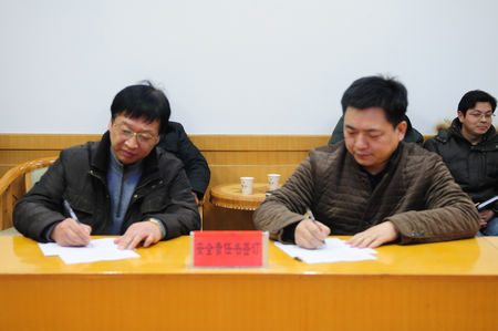 1月28日上午,ok138cn太阳集团2015年度“安全生产”和“社会管理综合治理”两个目标管理责任书签订仪式在二楼多功能厅举行。公司高管、中层以上管理干部参加了会议。会议由公司常务副总经理谭崇尧主持。
